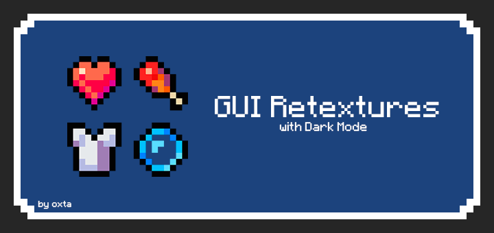 Makes GUI and HUD fancier with dark mode included. This is an unofficial «GUI Retextures» port, originally made by frugbug for Java.